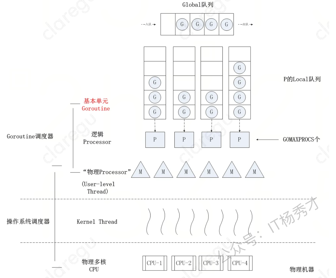 mcache与TCMalloc中的ThreadCache类似,mcache保存的是各种大小的Span,并按Span class分类,小对象直接从mcache分配内存,它起到了缓存的作用,并且可以无锁访问。 但mcache与ThreadCache也有不同点,TCMalloc中是每个线程1个ThreadCache,Go中是每个P拥有1个mcach,因为在Go程序中,当前最多有GOMAXPROCS个线程在运行,所以最多需要GOMAXPROCS个mcache就可以保证各线程对mcache的无锁访问,下图是G,P,M三者之间的关系