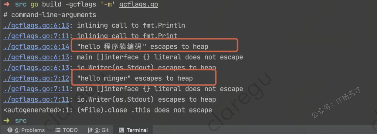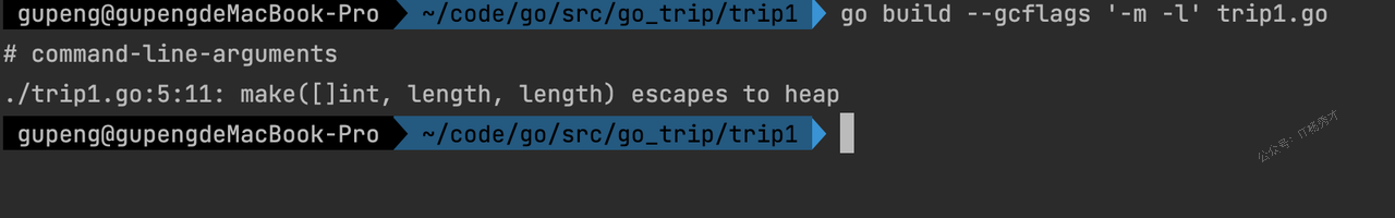 对于Go程序员来说,编译器的这些逃逸分析规则不需要掌握,我们只需通过go build -gcflags '-m’命令来观察变量逃逸情况就行了